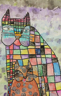 During this class period, I teach students several watercolor techniques. I demonstrate the following resist methods: saran wrap, rice, salt and crayon. I also demonstrate how to create an opaque or transparent look with the watercolor paint. The final technique I teach students is the blot method. As I demonstrate each method, I give students ideas on how they can use the method in their painting. Blot technique can be used to create clouds or smoke from the dragon's nostrils. Crayon resist is wonderful for keeping toe nails, teeth and eyes white. Saran wrap makes a beautiful water effect. The list goes on and on. The rest of the class period is used for practicing the techniques.