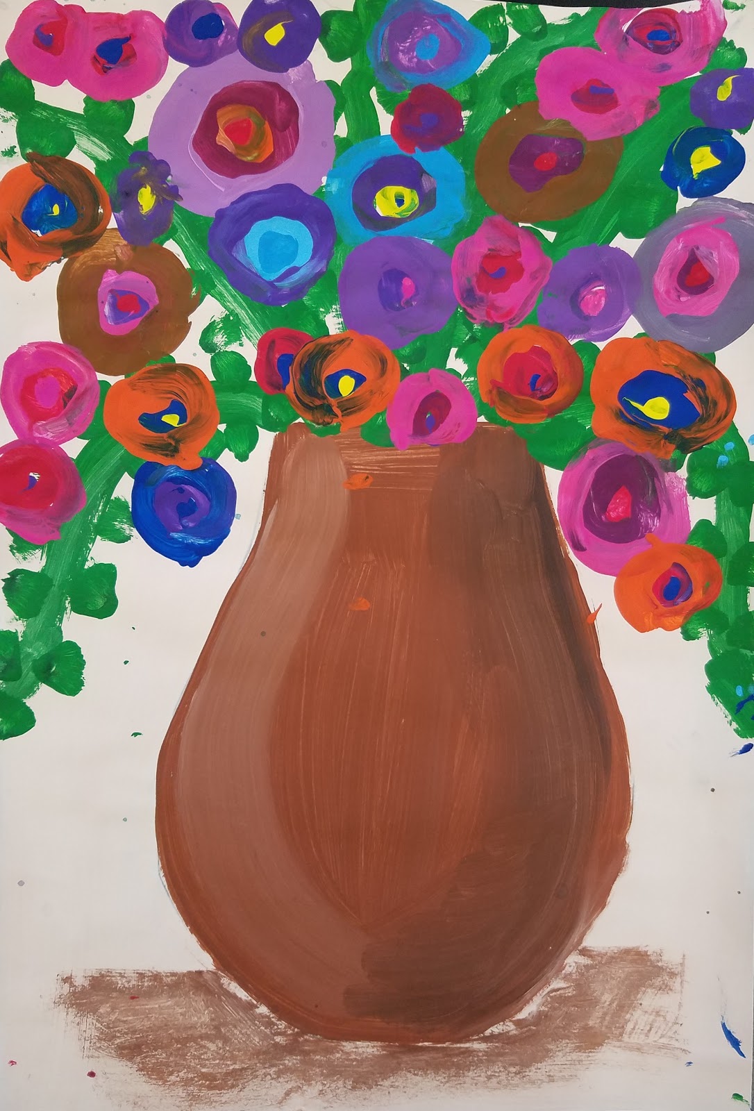 On this day, students finished up painting their compositions with the tempera cakes using their complementary color scheme.